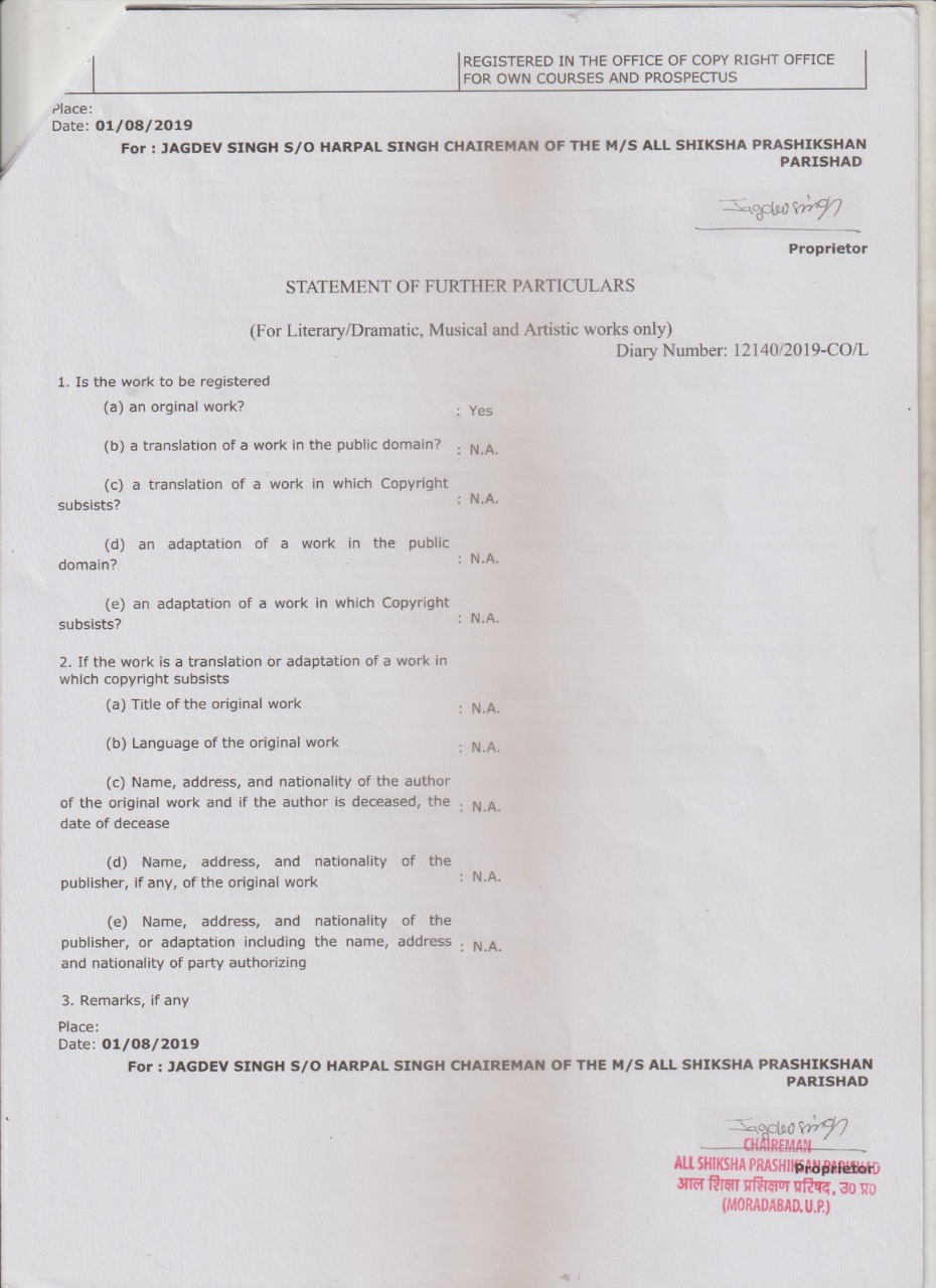 ऑल शिक्षा प्रशिक्षण परिषद, मंत्रालय से APPROVED BY GOVT OF INDIA UNDER .C.R.ACT,