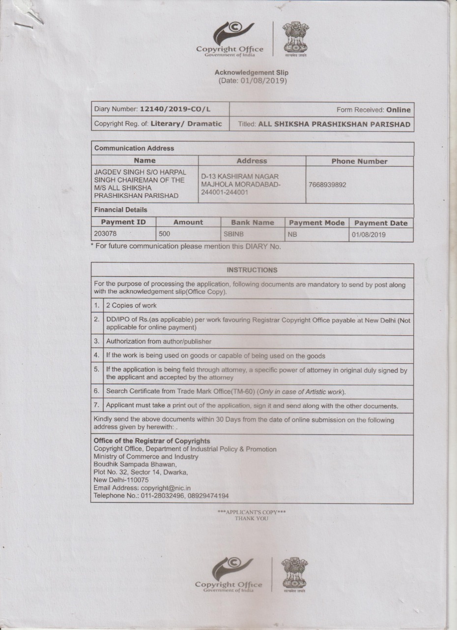 ऑल शिक्षा प्रशिक्षण परिषद, मंत्रालय से APPROVED BY GOVT OF INDIA UNDER .C.R.ACT,